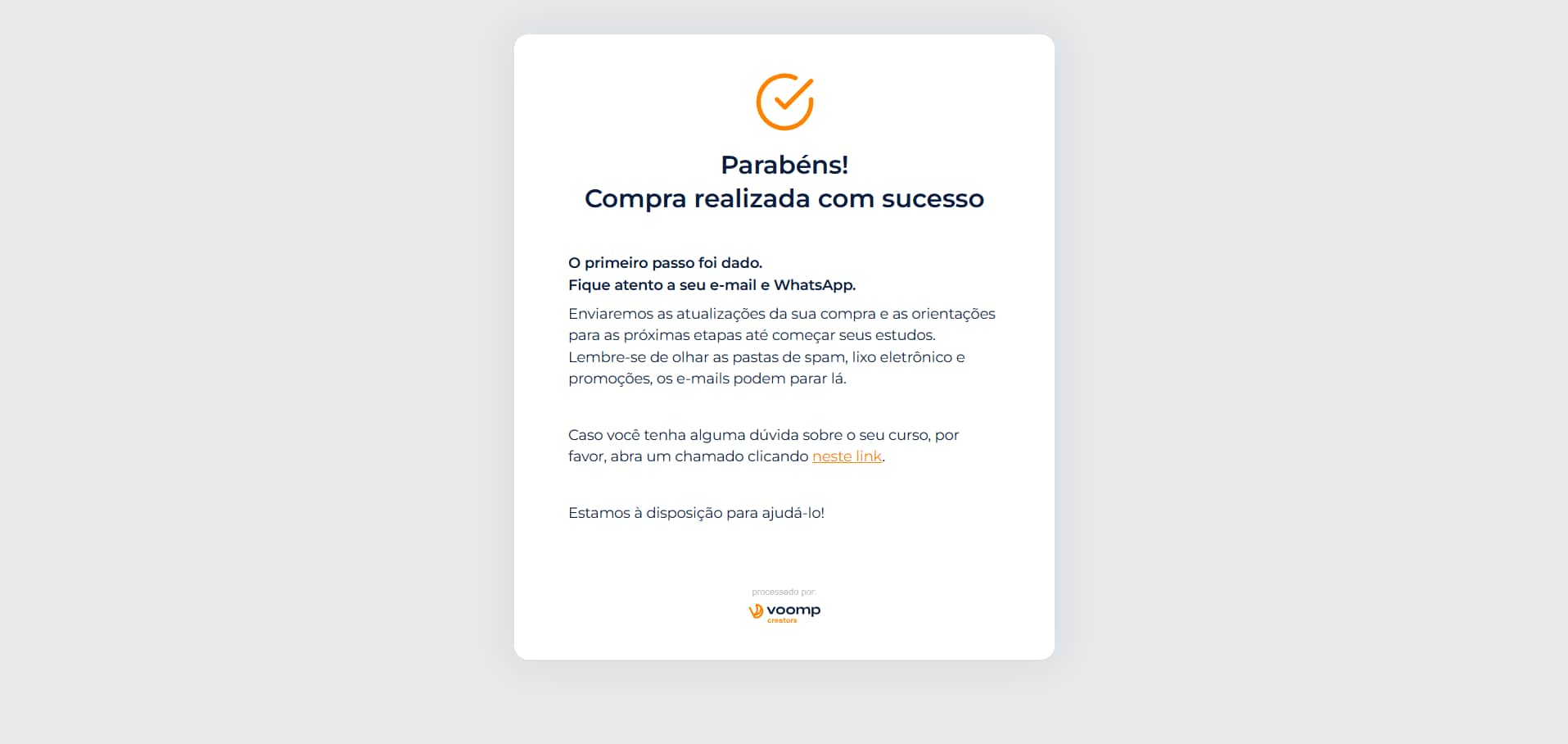 Se você possui uma página de obrigado própria, saiba que é possível integrá-la no checkout da Voomp. Assim, quando seus clientes concluírem a compra, serão direcionados para a mesma.