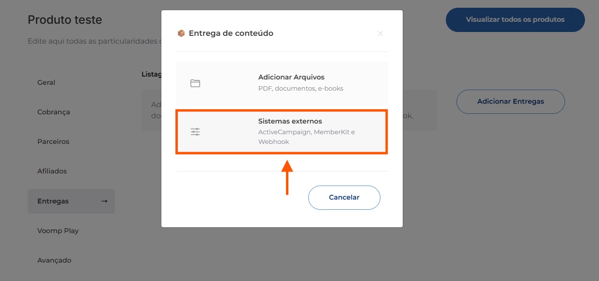 3. Acesse a aba “Entregas” e clique no botão “Adicionar Entregas”: