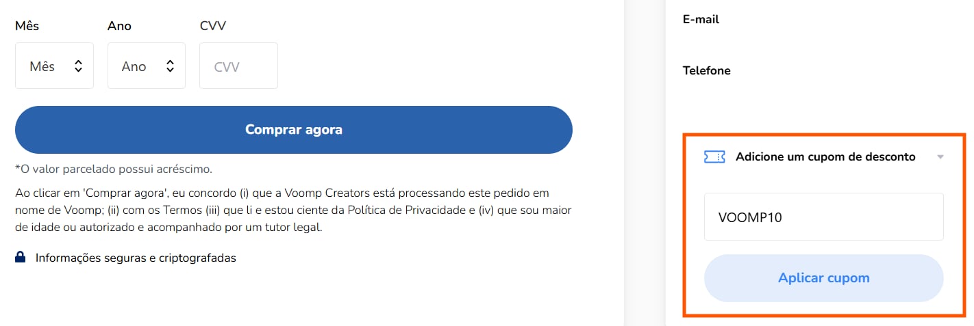 Pronto, agora os clientes conseguem adicionar o cupom cadastrado no checkout: