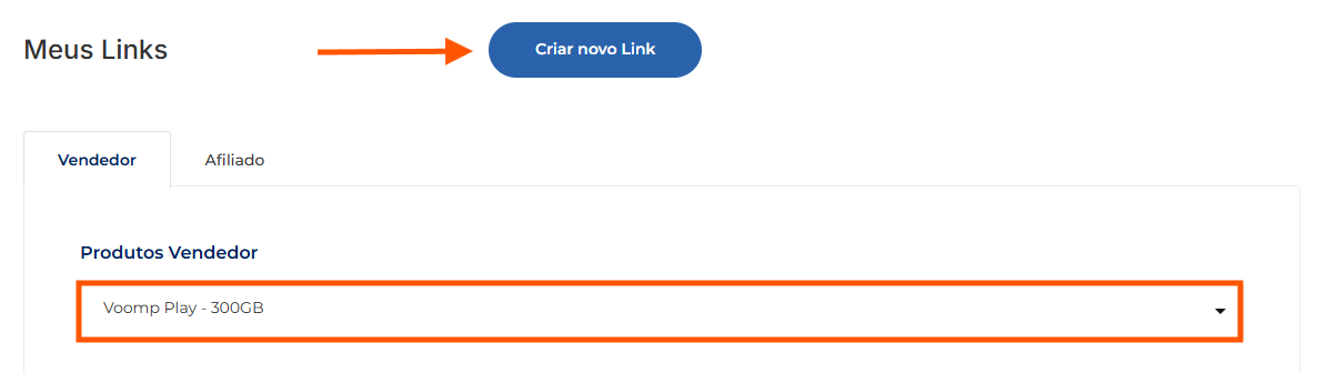Selecione o produto que deseja criar o link com cupom integrado e clique em “Criar novo link”: