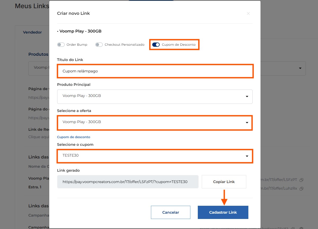 Por último, clique em “Cadastrar Link”: